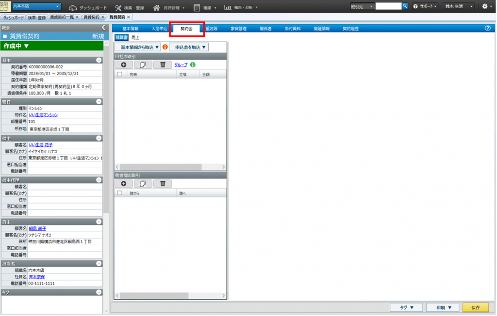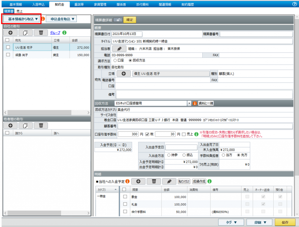 「基本情報から取込」ボタンをクリックし、精算書を作成します